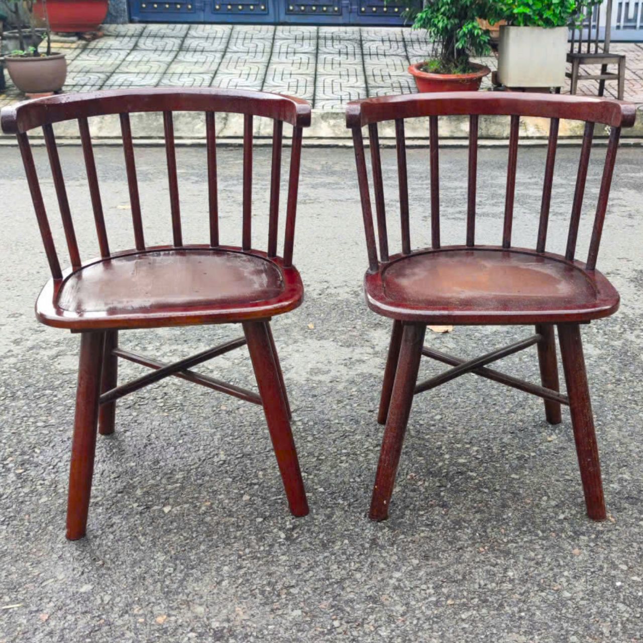 Ghế cafe gỗ 9 nan màu nâu tồn kho mới 99%