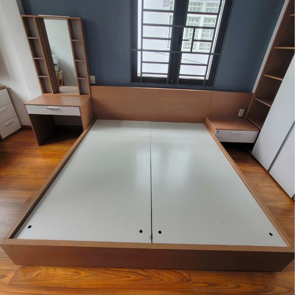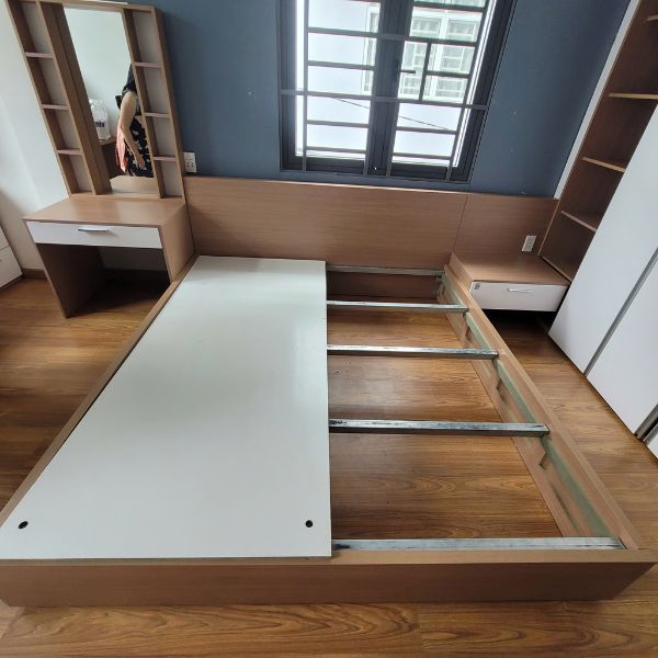 Thanh lý combo giường ngủ gỗ MDF 1m8 kèm tab