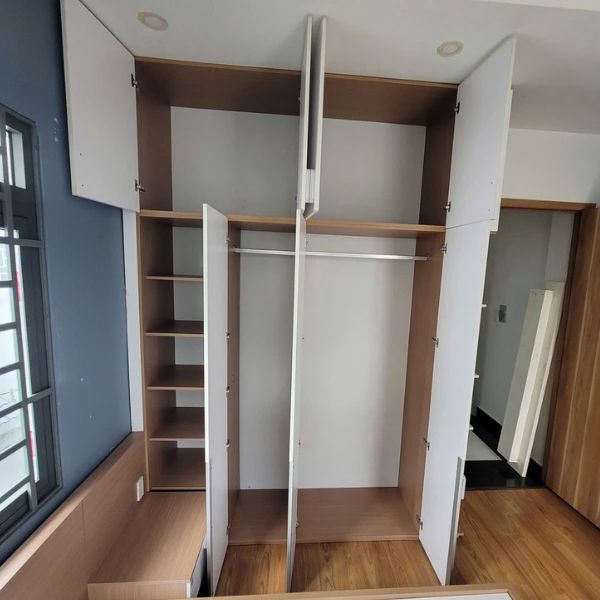 Thanh lý tủ quần áo kịch trần 2m9x2m2 nâu phối trắng