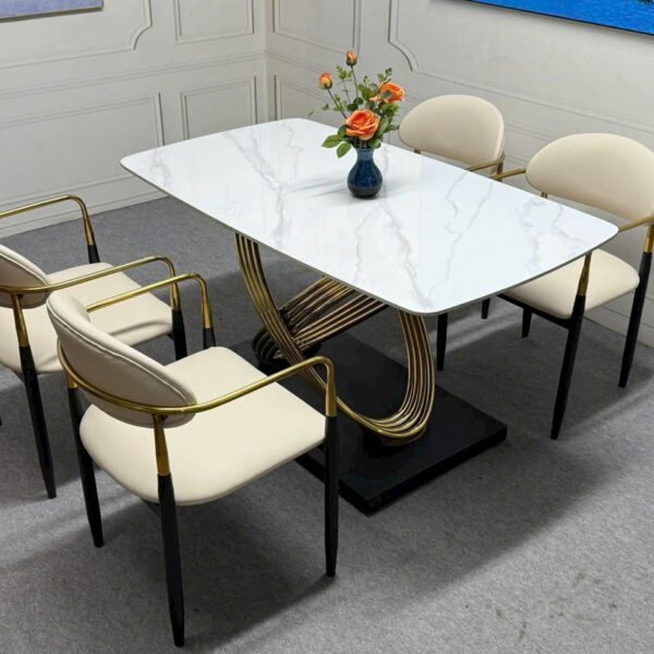 Bộ bàn ăn mặt đá 4 ghế nệm da cao cấp