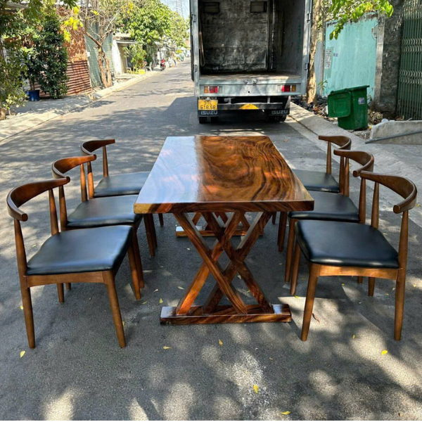 Bộ bàn ăn me tây 6 ghế Bull mặt nệm cao cấp