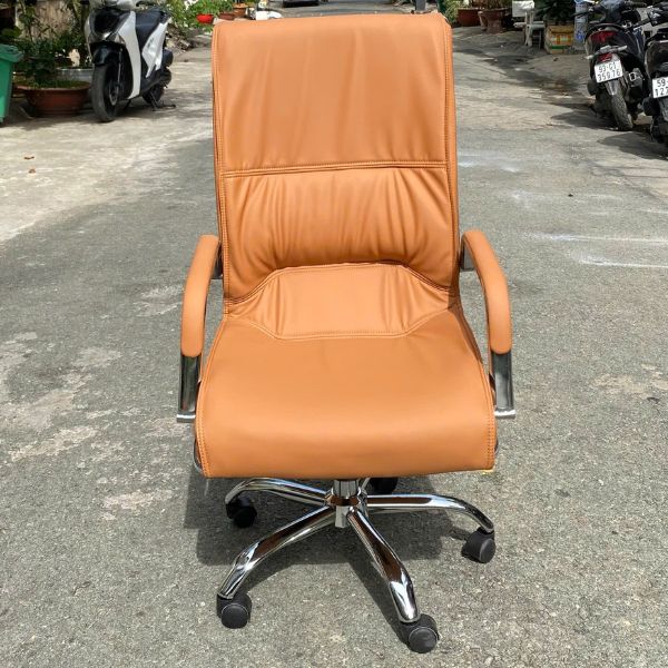 Ghế xoay văn phòng da nâu chân inox tồn kho