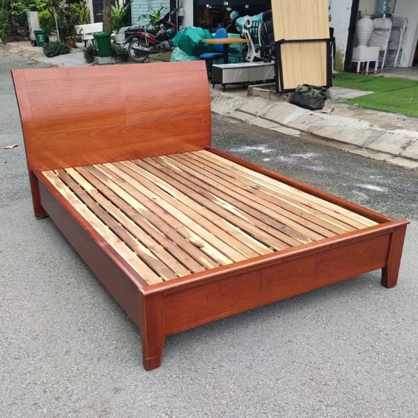 Giường gỗ công nghiệp nâu 1m4x2m thanh lý