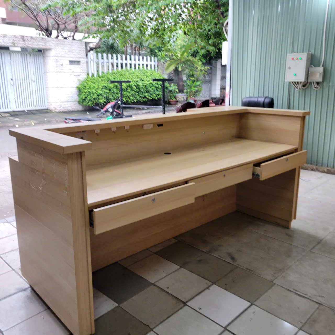 Tình trạng: Quầy reception thanh lý này là sản phẩm được chúng tôi thanh lý lại, tuy là hàng cũ nhưng chất lượng vẫn còn như mới 95% chưa hề hư hỏng gì, chất liệu tốt và chưa hề có vết trầy xước gì, có thể mua và sử dụng lâu dài. Quầy cũ này có màu sắc rất sang trọng, phù hợp cho hầu hết các không gian khác nhau, đảm bảo mua về sử dụng sẽ làm bạn hài lòng tuyệt đối.