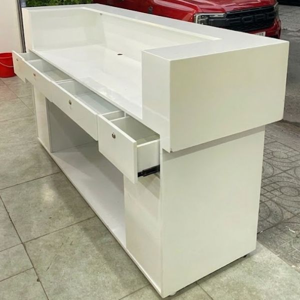 Quầy lễ tân 2m màu trắng gỗ MDF phủ melamin
