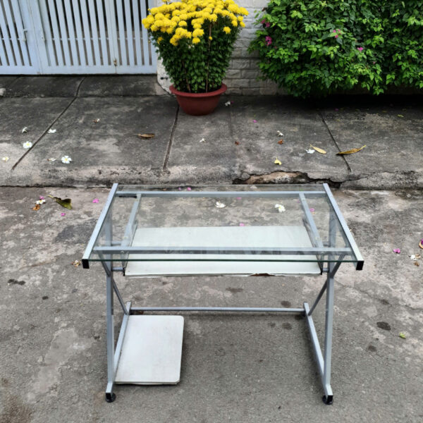 Thanh lý bàn làm việc chân sắt mặt kính cường lực