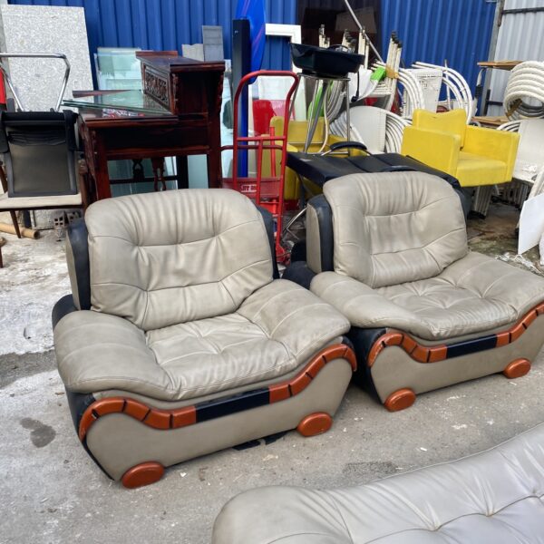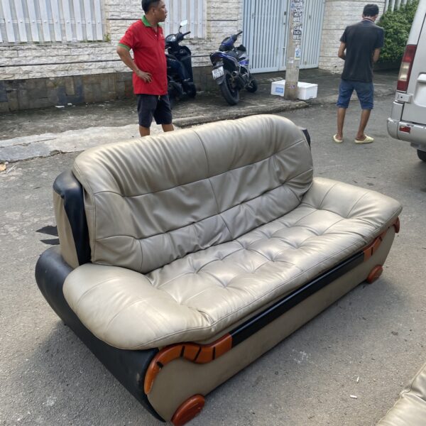 Chất liệu: Bộ sofa cũ bọc màu xám có khung ghế cực kì cứng cáp, bọc da simiii loại tốt. Đây là dòng sản phẩm sofa gia đình cao cấp, cũng dành cho văn phòng nên chất lượng rất tốt, có thể sử dụng được lâu dài mà vẫn giữ được nét đẹp và sang trọng.