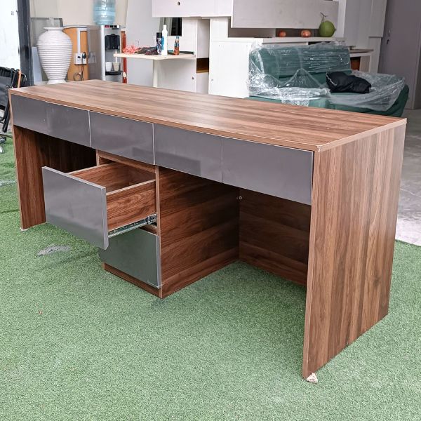 Thanh lý quầy lễ tân văn phòng gỗ MDF nâu 2 người
