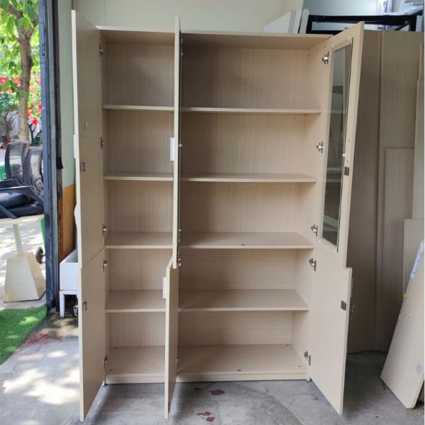 Tủ hồ sơ 3 cánh cửa kính màu kem có chất liệu gỗ MDF, loại tốt phủ men chống trầy, tủ hồ sơ này là hàng cũ được chúng tôi thanh lý về với tình trạng như mới gần như 95%, đây là sản phẩm tủ hồ sơ có thích thước nhỏ có thể làm tủ hồ sơ treo, tủ hồ sơ cũ cửa kính này phù hợp cho nhiều không gian văn phòng khác nhau, tạo sự gọn gàng và sang trọng cho văn phòng công ty của bạn.