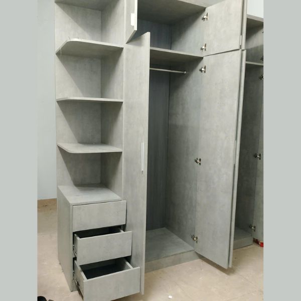 Thanh lý tủ quần áo gỗ liền kệ kịch trần màu xám